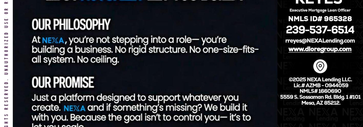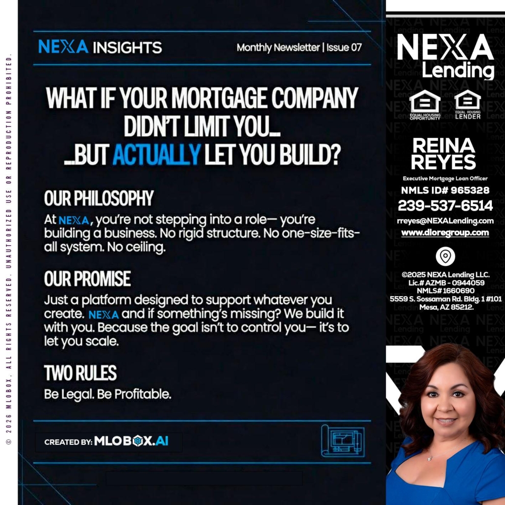 Hi, my name is Reina Reyes. I’m a Loan Officer with NEXA Lending LLC., offering personalized mortgage solutions, fast customized quotes, great rates and service with integrity.